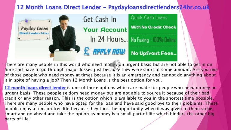 12 Month Loans No Credit Check Direct Lenders No Guarantor