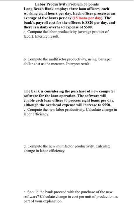 Solved Problem 1 Productivity And Productivity Growth We